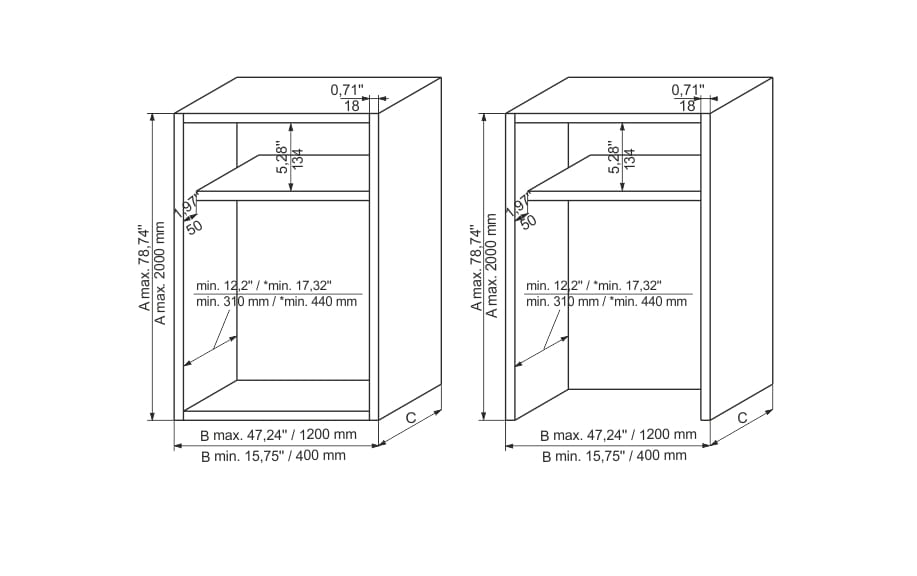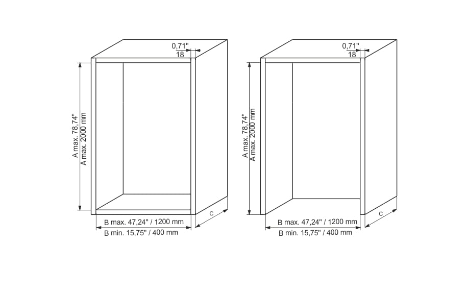 ** Roleta dedykowana do korpusu o grubości płyt 18 mm. W sytuacji użycia płyt o innych grubościach, kontakt z działem sprzedaży ZOBAL.